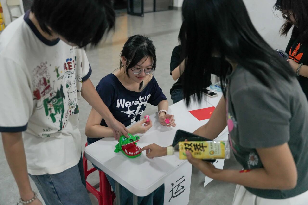 你划我猜活动太欢乐!有的组是同伴比划 、 有人手舞足蹈模仿 “升旗仪式”,队友秒答;有的是工作人员比划 “民族团结”,同学们盯着动作争相抢答。猜错时的笑声、猜对时的欢呼此起彼伏,满场都是互动的快乐,超解压!