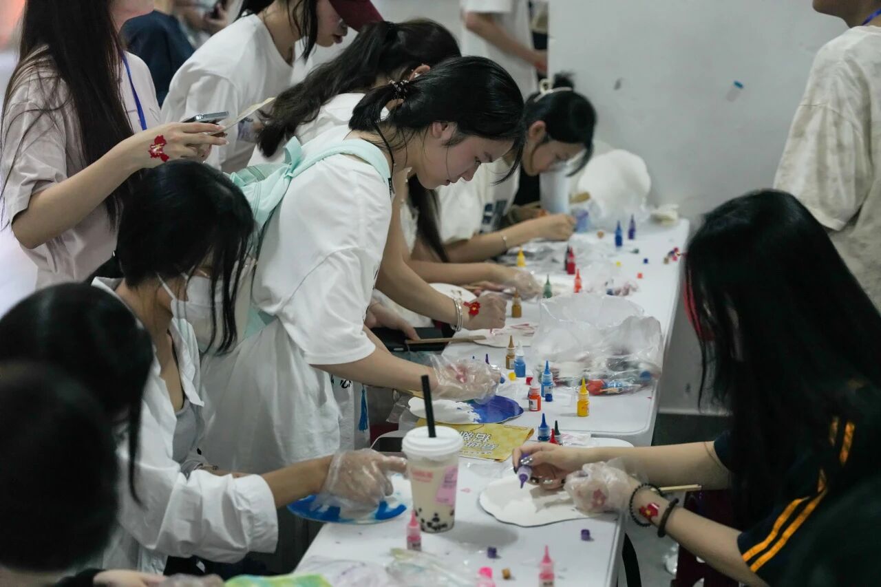 非遗漆扇绘制活动超热闹!现场备好颜料与画笔,大家执笔创作超投入 ,有人绘青山绿水展山河美,有人画稻穗笑脸显丰收喜,还有人描和平鸽寄美好愿。每把漆扇都藏着正能量,更让非遗魅力暖了人心~