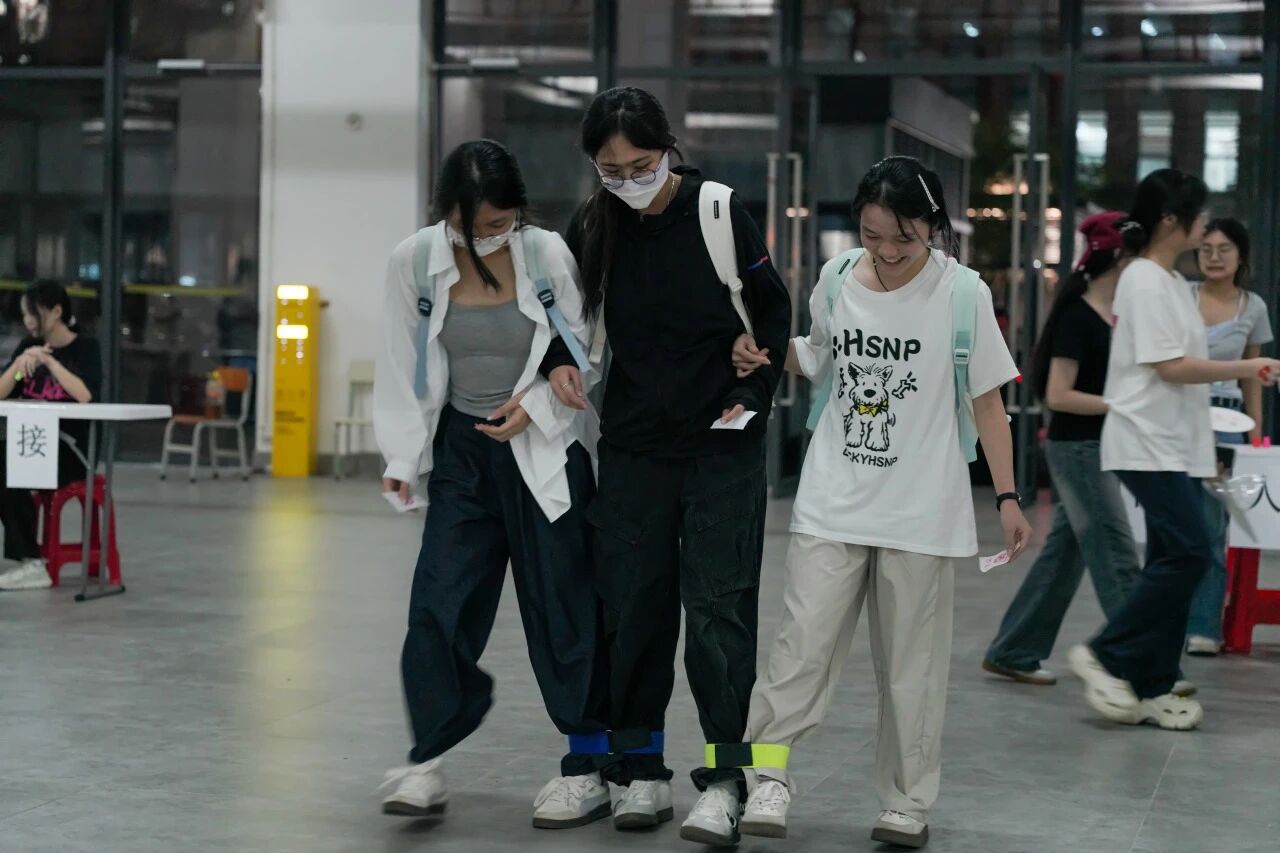 两人三足活动超欢乐!同学们两两组队,绑紧绑带后喊着 “一二、一二” 的口号稳步向前。有的搭档默契十足,脚步整齐快速冲向终点;有的虽偶有磕碰,却笑着互相鼓劲调整节奏。抵达指定位置时,大家欢呼雀跃,满场都是协作的快乐与青春活力!
