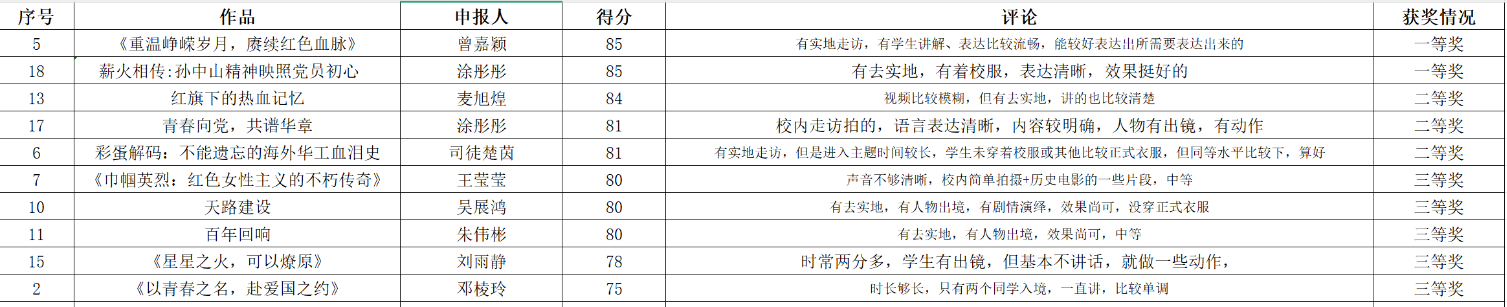 获奖名单已公示~
