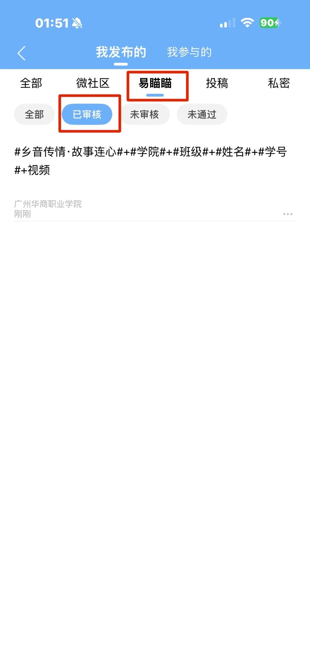 在“我发布的”页面中点击“易喵喵”后点击“已审核”。