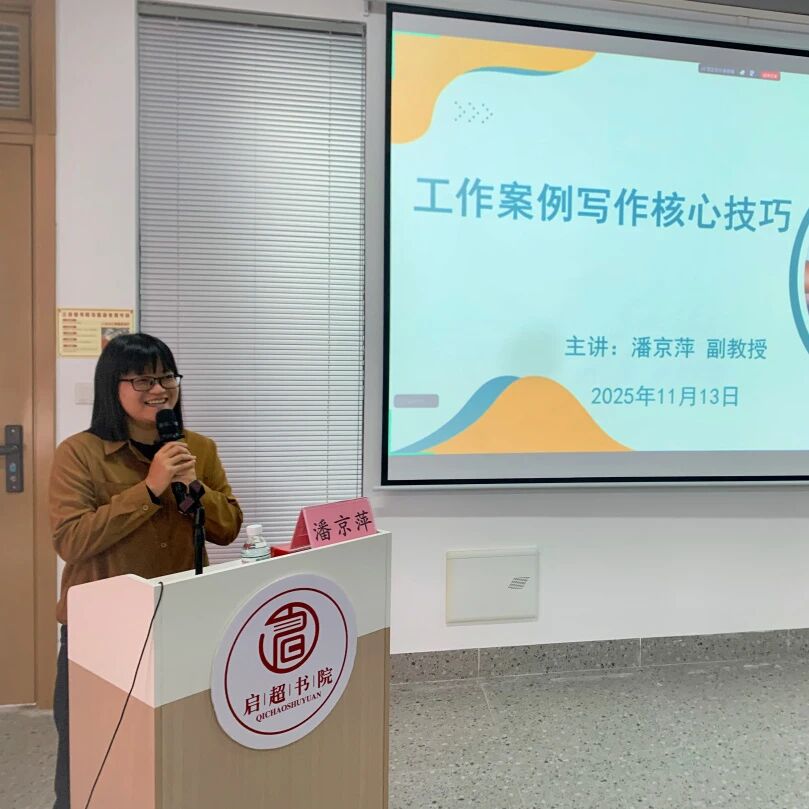 培训中,党委书记翁礼成教授阐释理论与实践融合的重要意义,明确构建 “领导岗位晋升与思政课教育教学双路径发展格局”,配套科研支持与职称晋升机制,为辅导员多元化成长保驾护航;党委组织统战部部长潘京萍副教授聚焦案例写作技巧,通过优秀范本分享可复制、可推广的实践经验;质量总监姚玉平教授以 “五育并举” 为框架,指导辅导员从 “事务管家” 转型 “价值引领者”;学务部部长金新凯副教授结合党的二十届四中全会精神,分享价值引领艺术与师生共成长的育人理念;校外资深辅导员带来 17 年一线育人经验,传递坚守与热爱的职业初心。