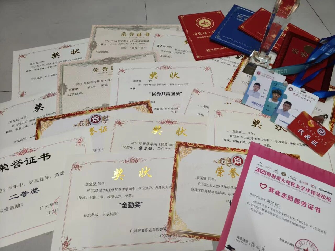 1.2025年5月获广州华商职业学院 “五四”评优“优秀共青团员”;