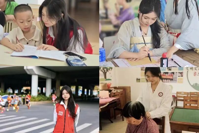 此外,她的志愿服务足迹遍布多地:凌晨到岗保障江门马拉松补给站运转,在崖门镇崖西社区夏令营带孩子体验非遗文化,更随学院深入乡村开展义诊——为老人普及健康知识、提供中医理疗服务,用专业与热忱传递温暖,累计志愿时长超340小时。