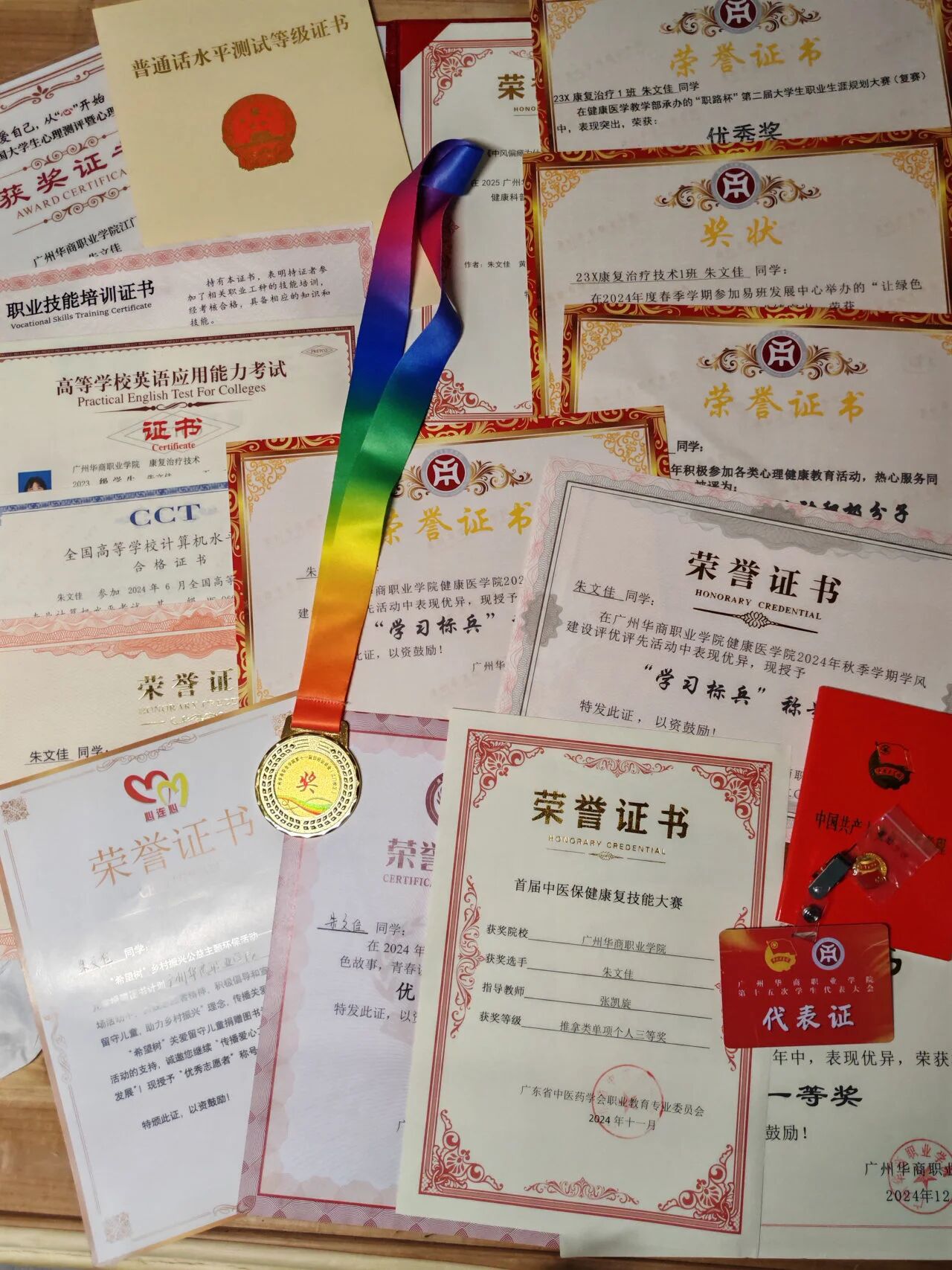 朱文佳,共青团员,23XH康复治疗1班学生,现任班级生活委员、辅导员助理。她勤奋踏实、积极进取,学业成绩优秀,连续获得“学习标兵”“全勤奖”等荣誉,并荣获校一等奖学金;专业技能扎实,在省首届中医保健康复技能大赛中获得个人及团体奖项;同时注重全面发展,积极参与体育、心理、环保、乡村振兴等各类活动与志愿服务,在多项竞赛中获奖,展现出全面发展的青年风貌。