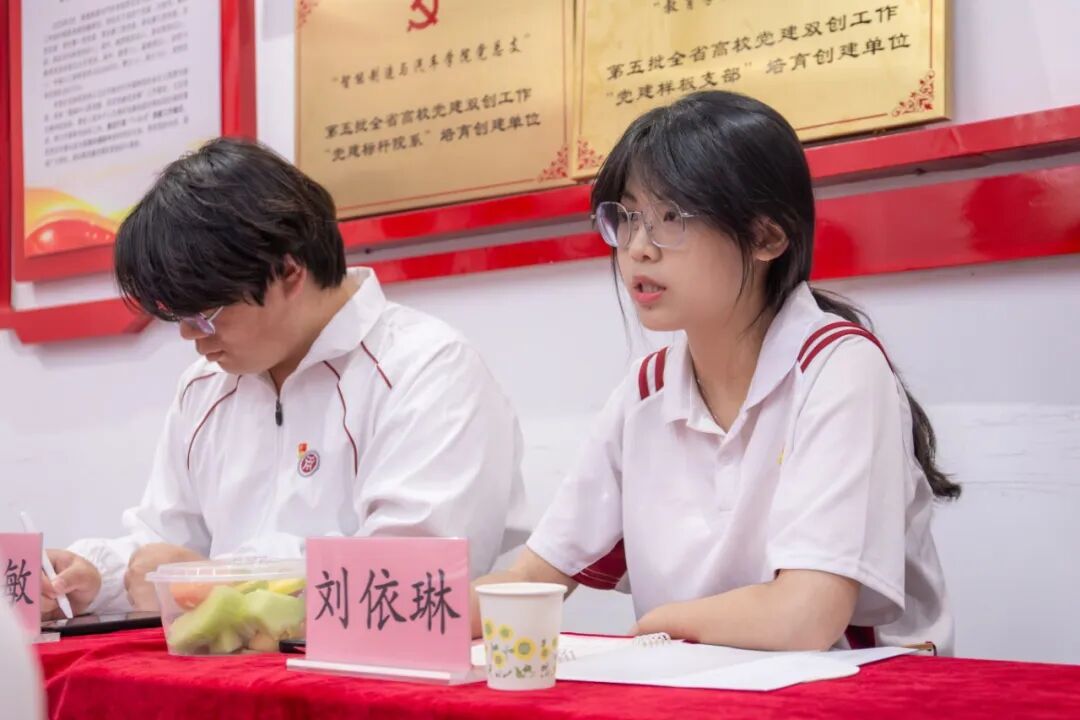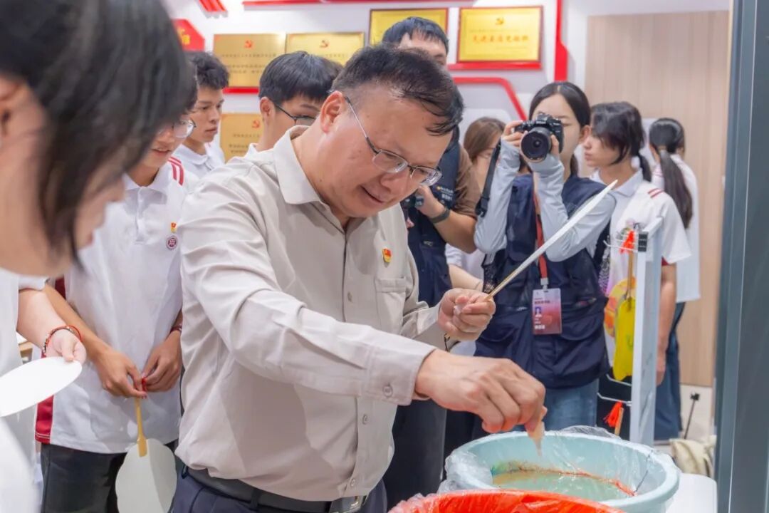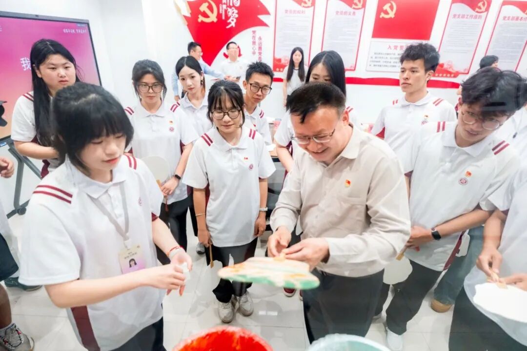 活动正式开始之前,翁礼成书记、教师代表与现场学生携手制作漆扇,在沉浸式体验的过程中有效拉近了彼此的距离。随后,18名预备党员代表依次发言,结合自身成长经历深入分享入党初心,深刻畅谈对学生党员身份的理解,并围绕党建活动开展、实践平台建设、AI+专业教学、校园配套设施完善等方面提出了具有建设性的意见和建议,字里行间满含对学校高质量发展的真切期盼。