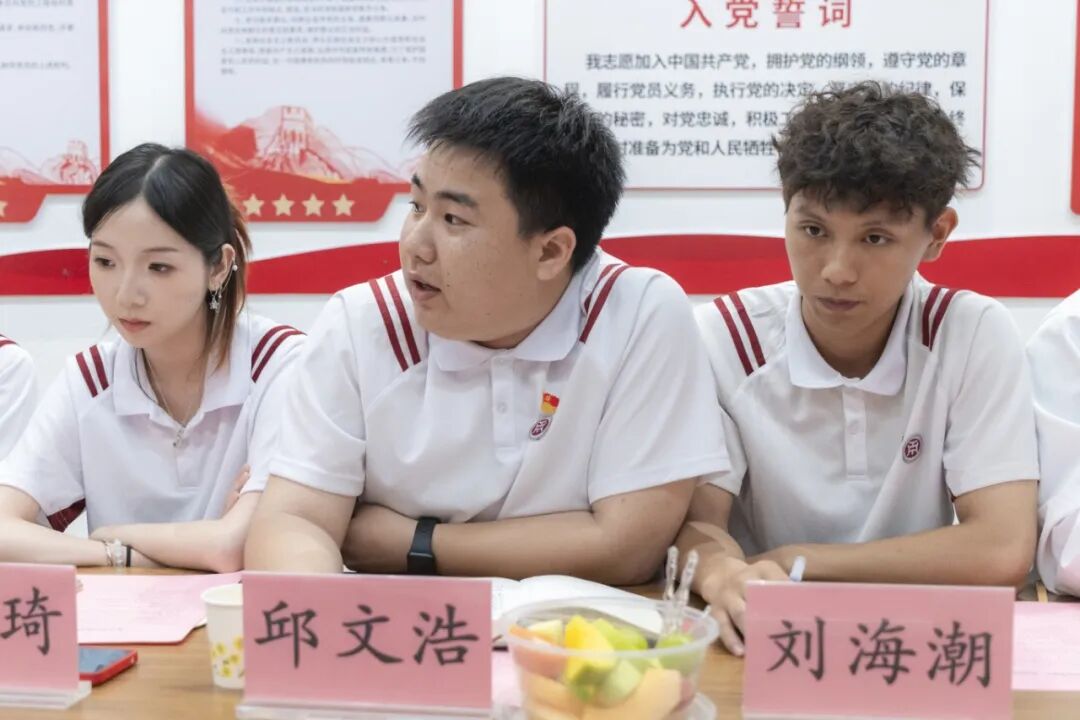 翁礼成书记认真倾听每一位同学的心声,对大家展现出的思想觉悟和责任担当给予了高度肯定,并逐一回应同学们提出的建议,详细介绍了学校在课堂改革、师资培养、校园建设等方面的规划与进展情况。他对全体预备党员寄予殷切期望,希望大家要明确方向、树立远大志向,筑牢思想根基,将个人理想融入学校发展和国家建设的大局之中,精准找准自身成长定位;要勇于担当、做好表率,以党员标准严格要求自己,在学习、工作和生活中充分发挥先锋模范作用,主动服务同学,带动身边人共同进步;要苦练本领、提升素质,主动顺应时代发展潮流,锤炼专业技能,做到知行合一,凭借过硬的能力在社会中站稳脚跟,用实际行动践行共产党员的初心和使命。