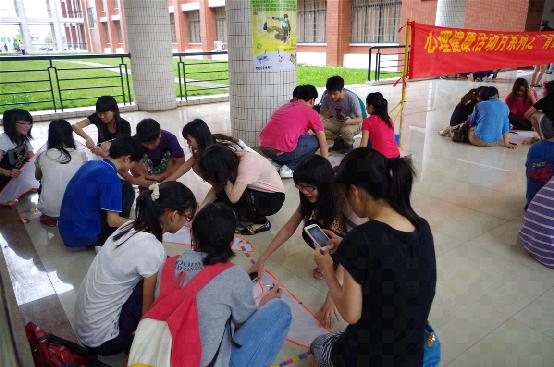 华职学院的大一、大二共29支队伍参加了此次活动,活动现场气氛活跃,处处洋溢着青春的热情和年少的不羁。到了制作风筝的时候,每支队伍的参赛成员立即投入紧张的制作。他们利用主办方事先准备好的材料,各司其职,有的利用铝管做风筝的支架,有的用颜料在白纸上描绘出绮丽的梦,有的用彩笔在白纸上写下青春的宣言……不久之后,一只只美丽的风筝被放飞在华职体育场的上,它们随风飞翔,构成了体育场上一道独特的风景线。
