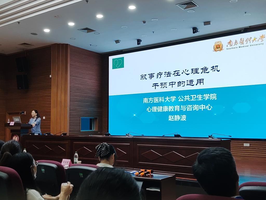 第二天,南方医科大学赵静波教授围绕“叙事疗法在心理危机干预中的应用”展开授课,通过典型实例详细讲解了外化、解构、建构和关系性身份认同等叙事提问技术。赵教授指出,叙事疗法强调“人与问题分开”,操作中应做到步步贴近、层层递进,以帮助学生重构积极自我认同。