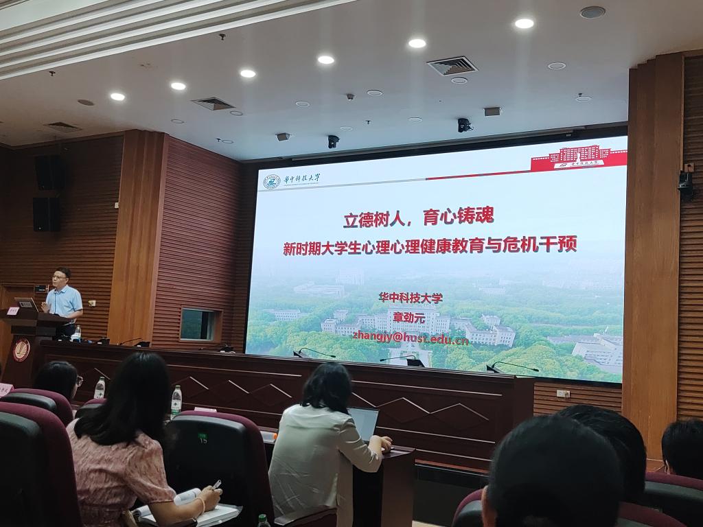 本次培训为期三天,课程安排紧凑、内容详实。首日课程由华中科技大学章劲元教授主讲,他结合大量真实案例,生动阐述了心理危机干预中家校沟通的现实困境与应对策略,并介绍了新时期大学生心理健康教育与危机干预的有效方法。章教授强调,在危机干预工作中必须始终坚持“生命至上”的原则。
