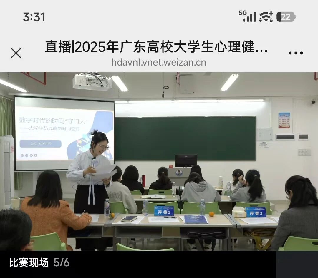 本次大赛由广东省教育厅主办,全省共有60名优秀教师通过各高校初赛、各区域中心片区复赛选拔,晋级巅峰对决,同台竞技。我校心理中心李嘉乐老师全程观摩“取经”,采集赛事数据与典型课例,解析评委提问逻辑与评分要点,提炼“数字化教学设计”、“沉浸式情境创设”等前沿策略,返校后将把赛事标准转化为校本研修模块,切实落实“以赛促学、以赛促教”,助力心康课堂焕发新活力,推动我校心理健康教育迈向专业化新台阶。